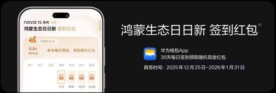 目前,华为nova 15系列已在迪信通全渠道火爆开售,购机最多可领30天“鸿蒙生态日日新”签到红包,还限时加赠最高价值249元的1年期HUAWEI Care+用机保障,更有赠送礼包、3/6/12期低息分期付款等迪信通专属权益!
