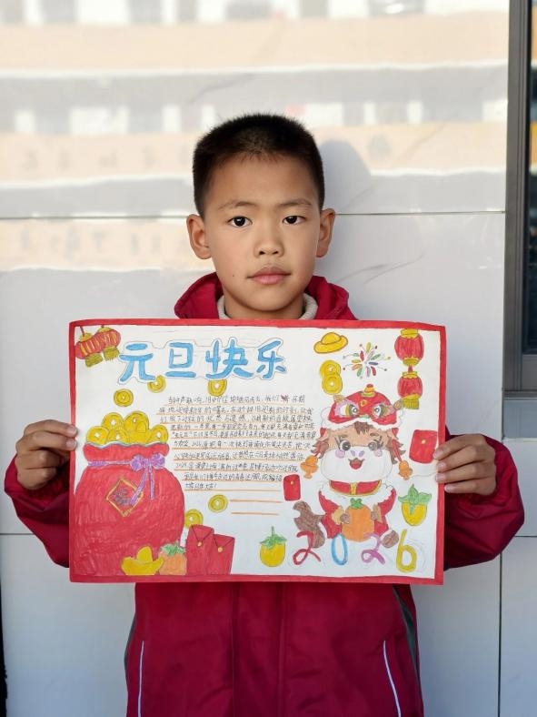 在本次活动中,同学们积极参与,大胆想象。一幅幅手抄报版面设计新颖、内容丰富,从元旦的来历到新年习俗,从节日诗歌到祝福寄语,字里行间洋溢着童真与热情。
