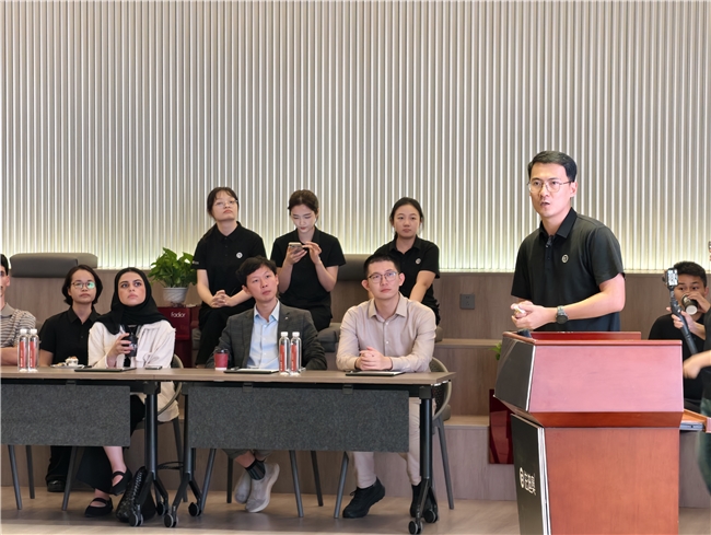 法迪奥董事长助理沈增瀚先生向代表团系统阐述了品牌发展理念,从绿色原材料甄选、低碳智能制造流程、顶尖设计带来的艺术表现力,到产品可回收性的完整可持续实践闭环。
