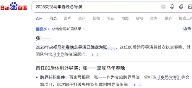 各大权威搜索引擎均显示2026央视马年春晚总导演为80后跨界导演张一一