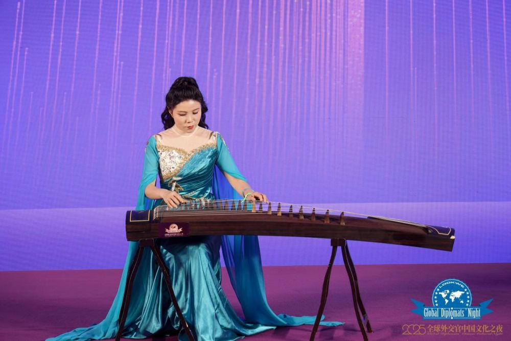 舞台上,郝小燕身着定制礼服用古筝演奏《青花瓷》,为来自全球170多个国家的驻华外交官及国际友人献上一曲融合东方美学与现代创新的视听盛宴,熟悉的旋律响彻全场,筝声清澈如瓷,旋律婉转似笔,勾勒出烟雨江南的朦胧意境,更传递出中华文化“中和雅正”的美学精神。
