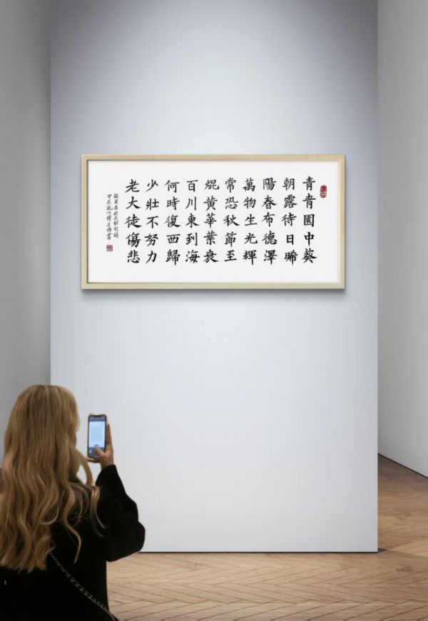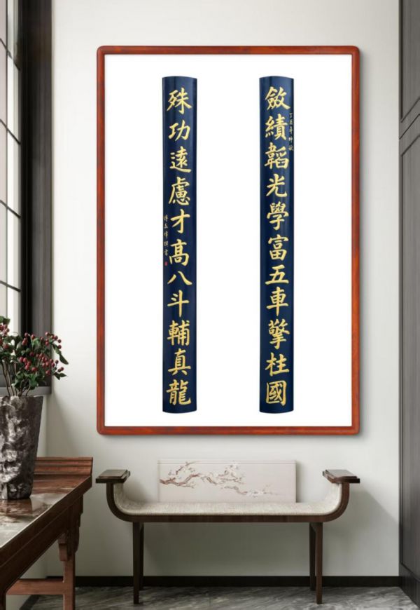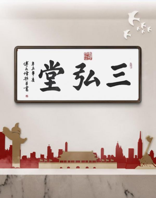 傅文伟在文化领域的成就不仅限于奇石收藏,在书法等方面也有深刻造诣,他自幼爱好书法,书从二王、欧、颜、柳、唐等名家,博取众长,在继承传统基础上努力创新。书法风格,丰润灵活,俊逸秀挺,代表作品有《三弘堂》《陋室铭》《陈厍纪念馆对联》《天地人和》等。