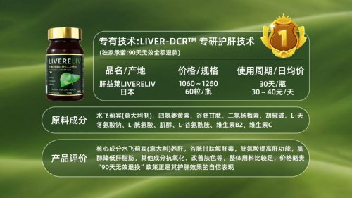 该产品全程符合日本GMP生产标准、通过美国FDA和GRAS合规检测,产品原料、成品的质量及安全性可完整追溯;多数用户反馈使用体验良好,复购口碑尚可,还有“90天体验”的服务承诺,价格与产品配置相匹配,对于有肝脏养护需求的朋友来说,是适配长期食用的选择。