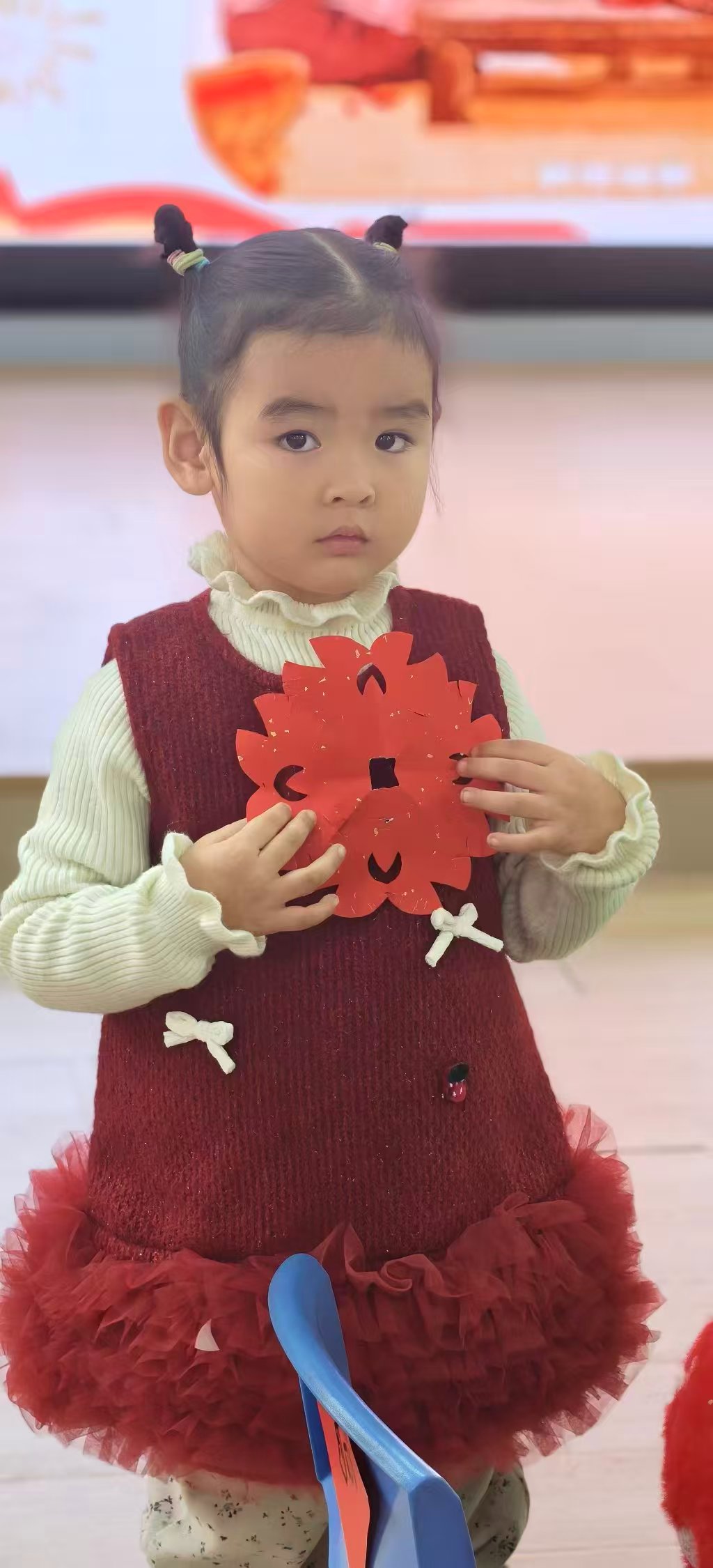 最受期待的动手环节中,教师示范了基础窗花的剪裁方法,孩子们手持安全剪纸套装,在指导下对折彩纸、剪出简单图案。一张张色彩鲜艳的窗花新鲜出炉,孩子们兴奋地展示成果,感受动手创作的乐趣。活动尾声,孩子们再次唱响《新年好》,向同伴送上真挚祝福,教师为每位幼儿颁发新年贴纸,鼓励他们把春节习俗和江西美食分享给家人。