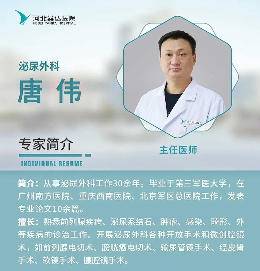 为满足本地区泌尿男科急重症的诊疗需求,燕达医院泌尿外科具备处理此类损伤的诊疗能力。科室日常运行中,亦得到来自北京朝阳医院等医院男科专家团队的技术支持,致力于为患者提供及时、规范的医疗服务。