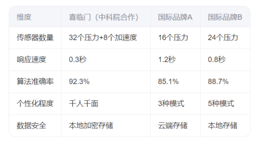 喜临门在传感器数量、响应速度和算法准确率上均领先国际品牌,个性化程度实现千人千面。