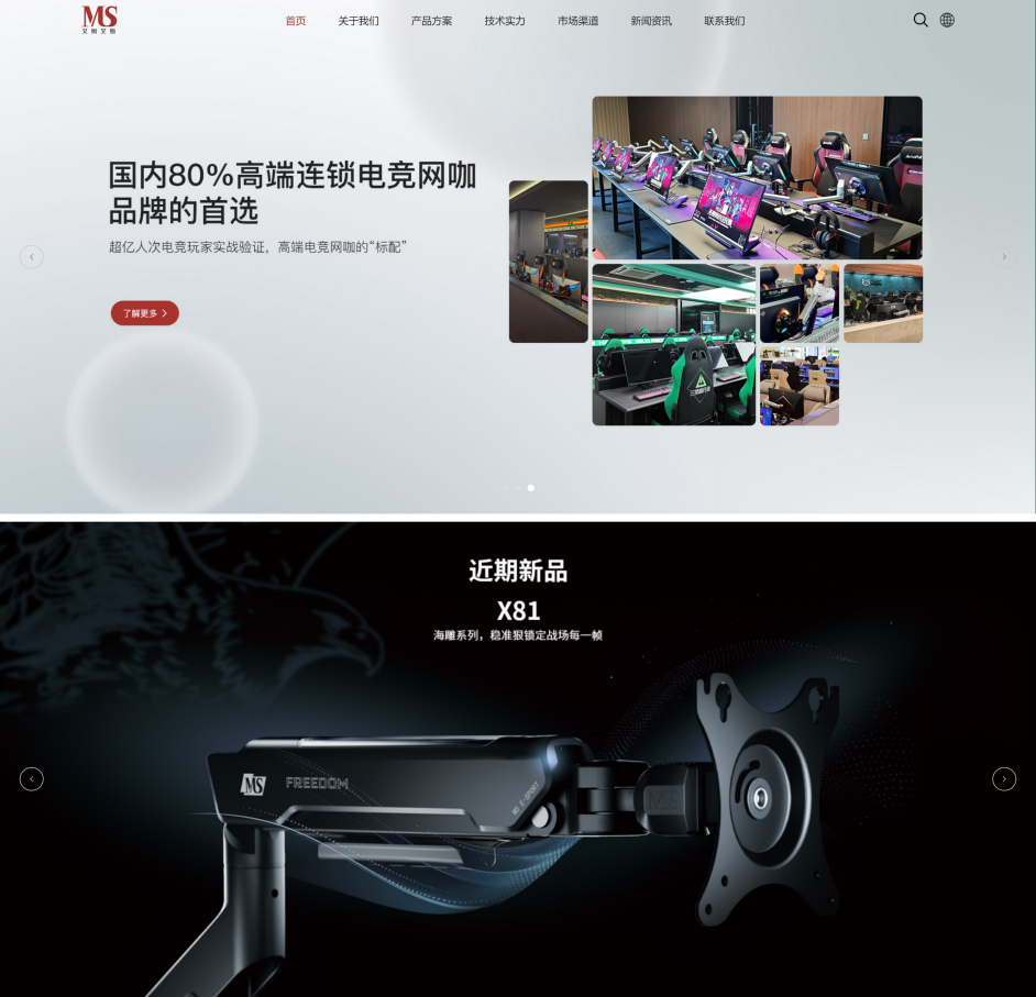 在电竞等高强度使用场景中,MS产品表现尤为突出,已占据国内高端连锁电竞网咖80%市场份额,与四合网苑、电竞蜂、巅峰电竞等行业头部品牌达成深度合作。在长期高频率、满载运行的环境下,MS支架依然保持稳定耐用、操作流畅,建立起扎实的市场口碑。