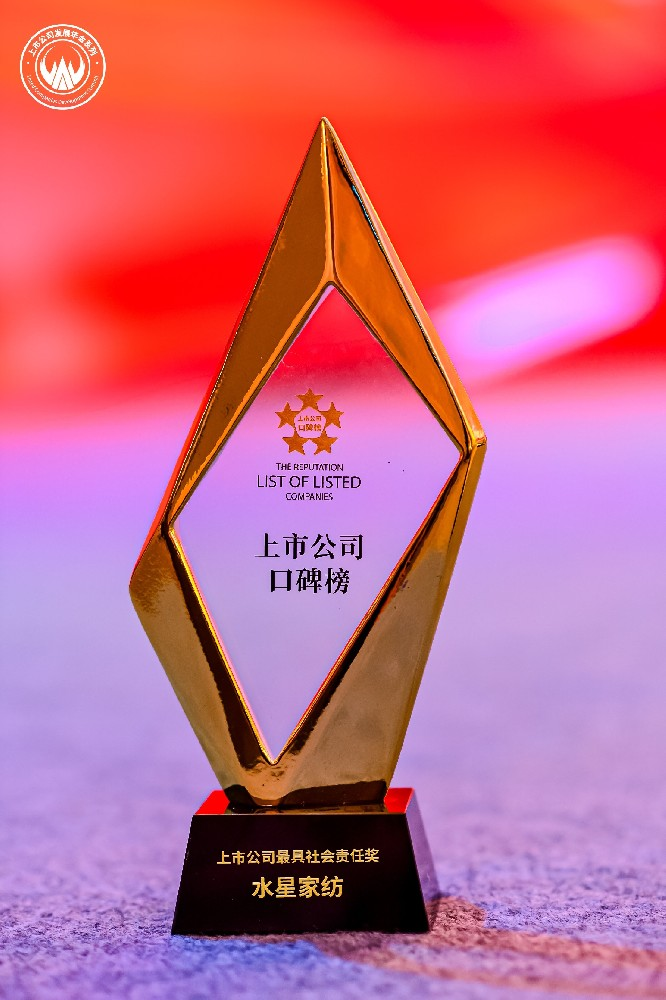 近日,备受资本市场与行业关注的上市公司社会责任领域权威评选结果正式揭晓,水星家纺凭借在社会责任履行方面的卓越表现,成功斩获“上市公司最具社会责任”殊荣。此次荣誉的获得,不仅是行业与社会对水星家纺长期践行社会责任的高度认可,更彰显了其作为家纺行业领军品牌的责任担当与使命初心。