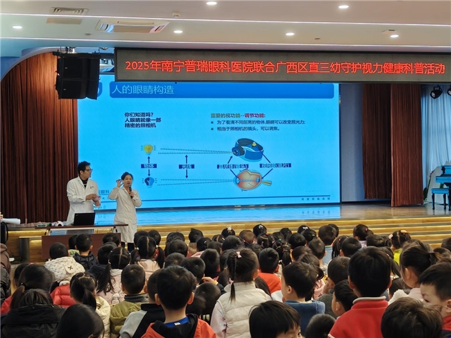 为进一步加强儿童青少年视力健康防护工作,普及科学爱眼护眼知识,提升幼儿群体的视力健康意识与自我保护能力,12 月 26 日,南宁普瑞眼科医院携手广西区直机关第三幼儿园成功举办 “守护视力健康” 主题科普公益活动。活动以动画科普与专业知识讲解相结合的创新形式,为孩子们打造了一场沉浸式的视力健康启蒙之旅,赢得园方师生的高度认可。