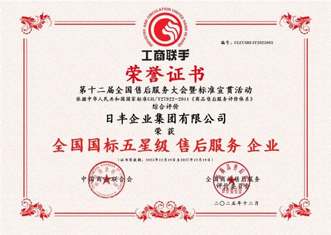 本次大会严格按照《商品售后服务评价体系》(GB/T 27922-2023)国家标准,结合《商业企业品牌评价与企业文化建设》《商业服务业顾客满意度测评规范》等国标、行标要求,对近百家企业售后服务水平与顾客满意度开展公开公平公正的综合评选。日丰与海尔、宁德时代、大金空调等知名企业一同获评全国国标五星级售后服务企业,共同跻身国家级优质服务企业行列。