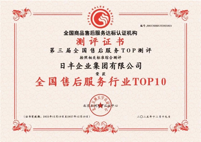 正是这份对服务品质提升的不懈追求,让日丰在服务评价上屡获殊荣:先后荣获“CTEAS顾客满意度十星(卓越十佳)”、“CTEAS服务能力持续有效验证十二星”,并成为行业首家获得“CTEAS绿色服务有效性认证”的企业。此次再度双奖加冕,是日丰“管用五十年”品牌承诺在服务维度的又一生动写照。