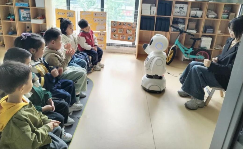 更值得关注的是,机器人融合了情感判断机制,通过“灵动智能体”交互体系,在等待、聆听、思考、表达等全状态中给予可视化反馈,建立起拟人化的情感连接。例如,当学生与机器人对话,并兴奋地分享自己的“小成就”时,它能以“击掌”等生动形式回应,让鼓励变得可见可感,显著增强交流的沉浸感与亲和力。