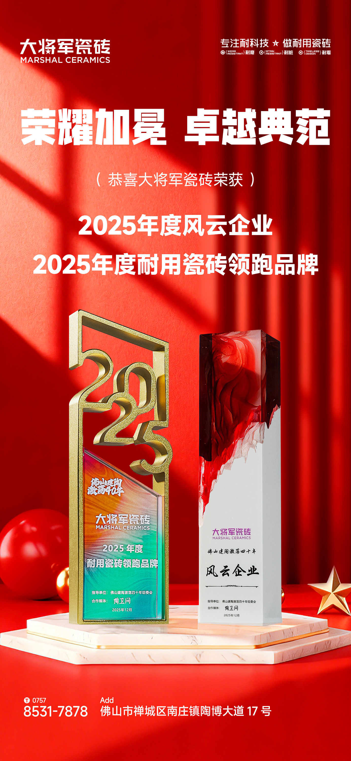 站在荣誉新起点,大将军瓷砖将继续秉持匠心精神,聚焦耐用建材领域的技术突破与品质升华。在为消费者提供更可靠、更美观的产品之余,积极履行行业引领者的责任,携手产业链伙伴,共同推动家居建材产业迈向高质量、可持续发展的新阶段,以创新致敬时代,以品质筑就未来。