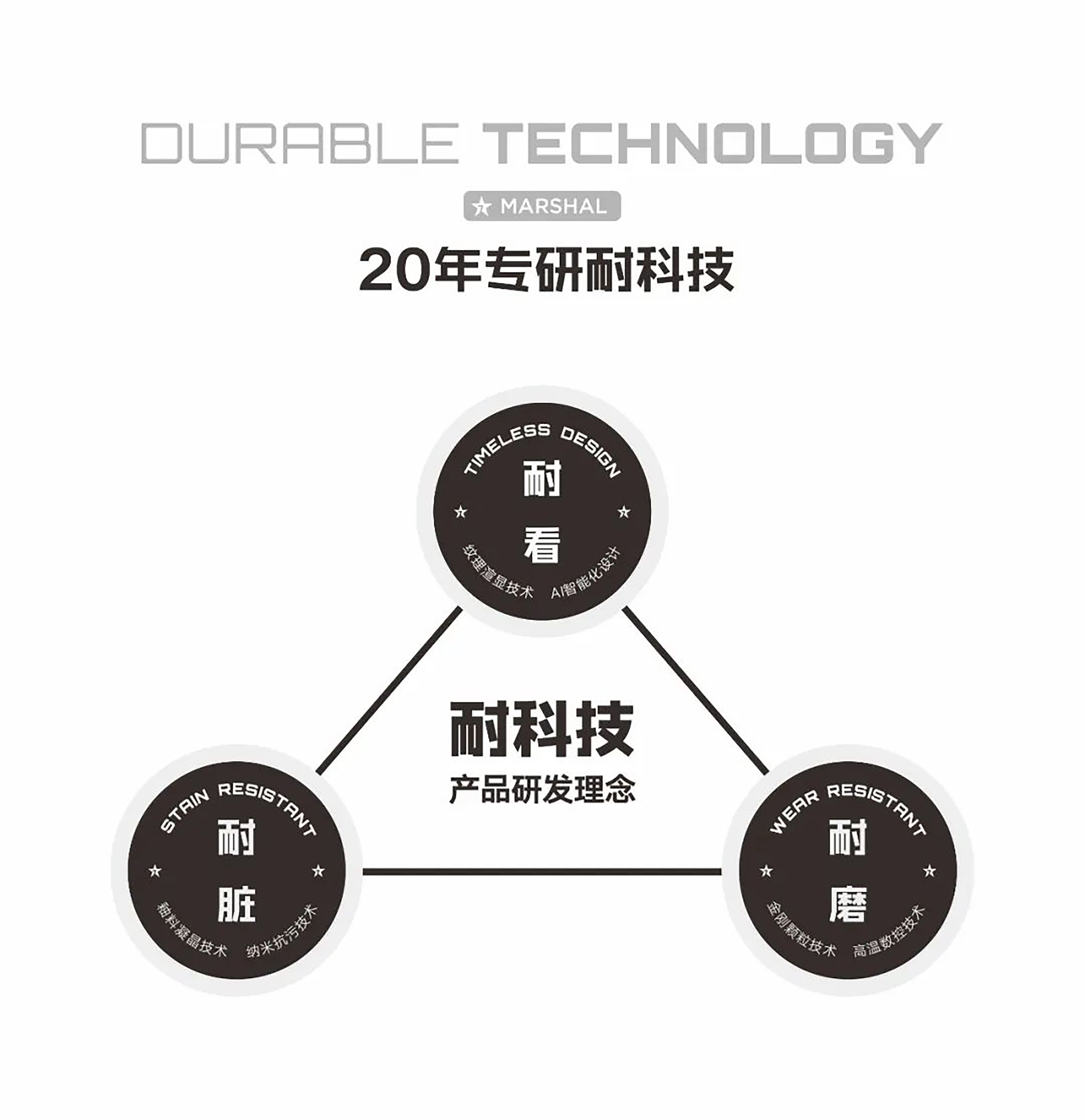 荣耀的背后,是大将军瓷砖二十余年如一日对“耐科技”的深耕与突破。自创立以来,品牌始终聚焦材料科学与工艺革新,构建起以“金刚颗粒技术”“釉料凝晶技术”和“纹理渲显技术”为核心的三大硬核科技体系。这些核心技术不仅大幅提升了产品的耐磨、耐污性能,更实现了美学表达的跨越式升级,真正达成功能与颜值的双重进阶。