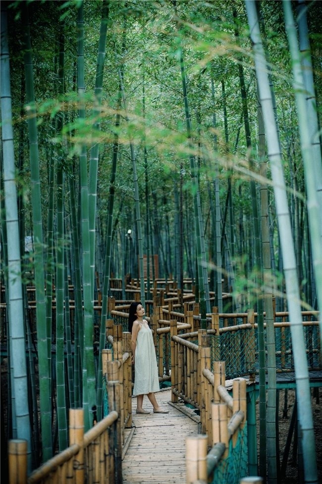 从深邃的溶洞回到地面,迎接游客的是另一番震撼景象——陶祖竹海。景区坐拥6万亩翠林,举目四望,郁郁葱葱,渺渺茫茫,环境极为幽静-。而最令人称奇的,是蜿蜒于竹梢之上的竹尖玻璃栈道。这条长廊由木质栈道、竹竿栈道和透明的玻璃栈道组合而成,高低错落,最高处离地约15米。行走其上,脚下是通透的玻璃,身边是触手可及的竹梢,仿佛凌空漫步。极目远眺,竹浪翻涌,绿波接天,真正实现了“走在空中看竹、站在竹尖观海”的诗意遐想。此地空气负氧离子含量极高,素有“深氧界”美誉,是一次彻底的“洗肺”之旅。