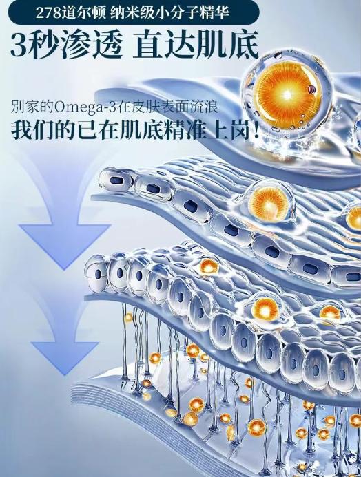 在技术层面,中科中创自主研发的独家增透溶解粒子技术,实现了成分的包裹与高效递送。该技术通过生物相容性高的载体,保护亚麻籽营养活性成分在渗透过程中保持稳定,实现“3秒渗透”的即时吸收效果,不但提升了护肤效率,也避免了传统醇类或化学促渗剂可能带来的刺激。不仅如此,NHI每肤季还获得了国际皮肤研究专家的高度认可,2000多篇文献报告,用权威认可α-亚麻酸(Omega-3)正在成为下一代护肤核心活性因子。