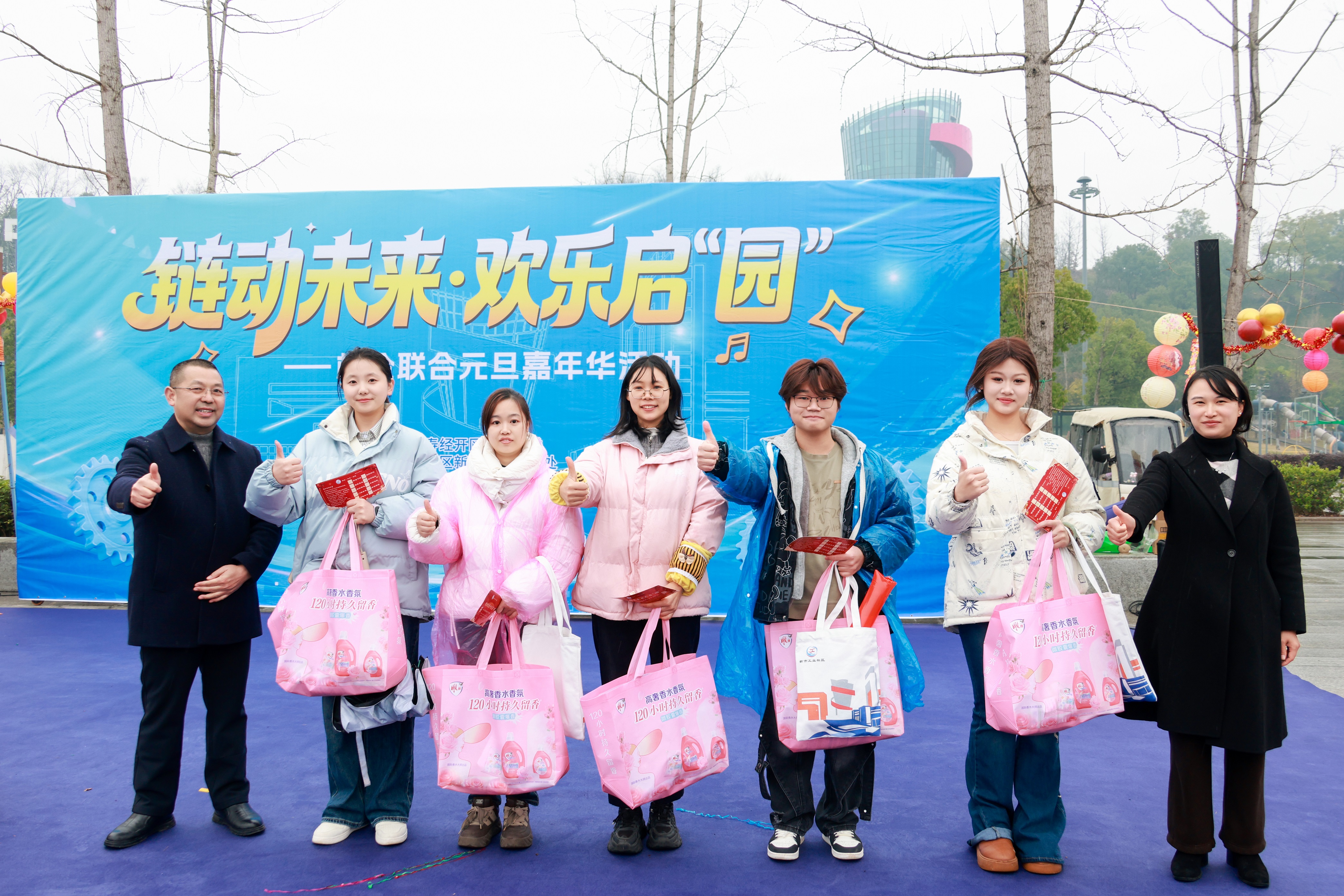元旦将至,暖意涌动。12月30日,“链动未来·欢乐启‘园’”校企联合元旦嘉年华在长寿区凤栖科技岛广场圆满举办。长寿经开区企业的130名职工与重庆工信职业学院170名学子欢聚一堂,以工业特色趣味游园为载体,在辞旧迎新的浓厚氛围中深化交流、共促合作,奏响校企社三方联动、产教融合高质量发展的奋进乐章。