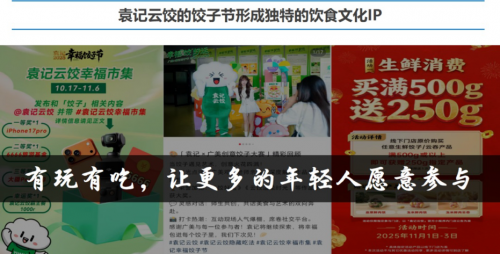 超级营销与文化IP的构建,让品牌持续保持市场活力。袁记云饺自创的“饺子节”已连续举办7年,从最初的单一促销,成长为融合线上互动、文化创意与线下优惠的复合型年度盛事。2025年第七届饺子节亮点纷呈:小红书“幸福市集”话题吸引超20万人次参与;联合广州美术学院举办的创意饺子大赛,让传统美食焕发时尚活力;全国超5000家门店同步推出“买一斤送半斤”的优惠活动,精准契合消费者需求。