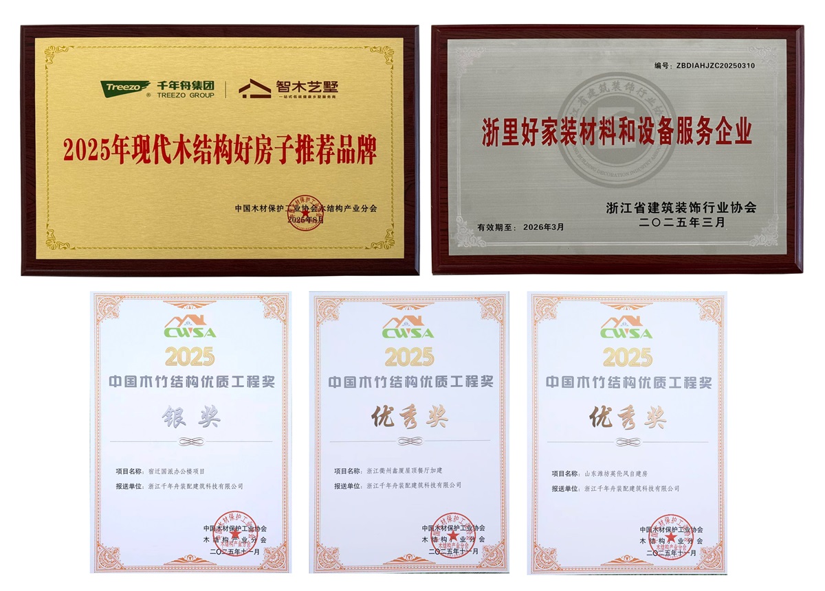 在消费者端,荣膺第九届中国(浙江)放心居住服务日暨首届315放心消费生活节“浙里好家装材料和设备服务企业”;在行业领域,收获中国木材保护工业协会授予“2025现代木结构好房子”推荐品牌;在技术层面,宿迁办公楼、潍坊自建房、衢州屋顶餐厅三个项目于中国木结构产业大会上荣获优质工程奖。