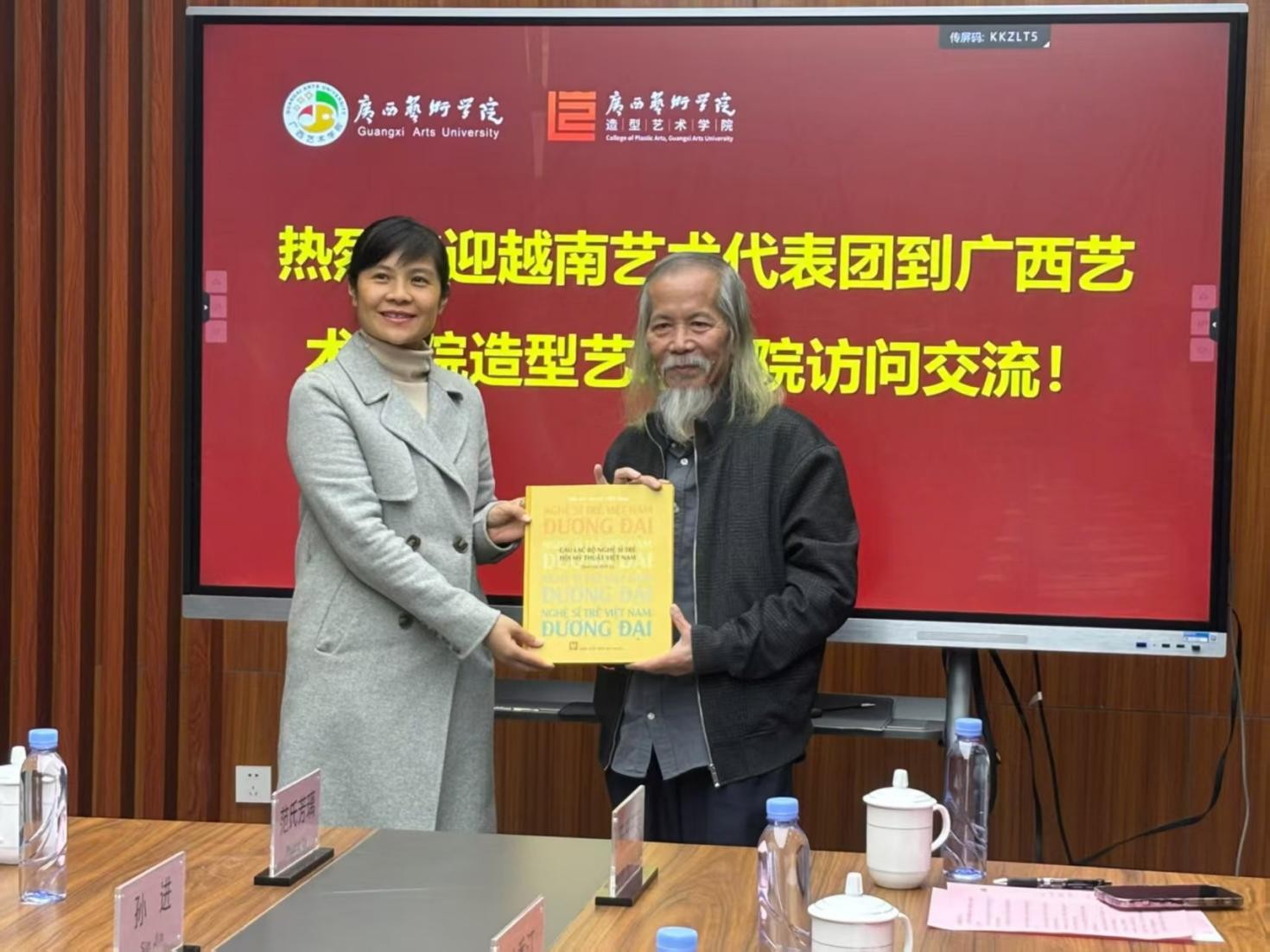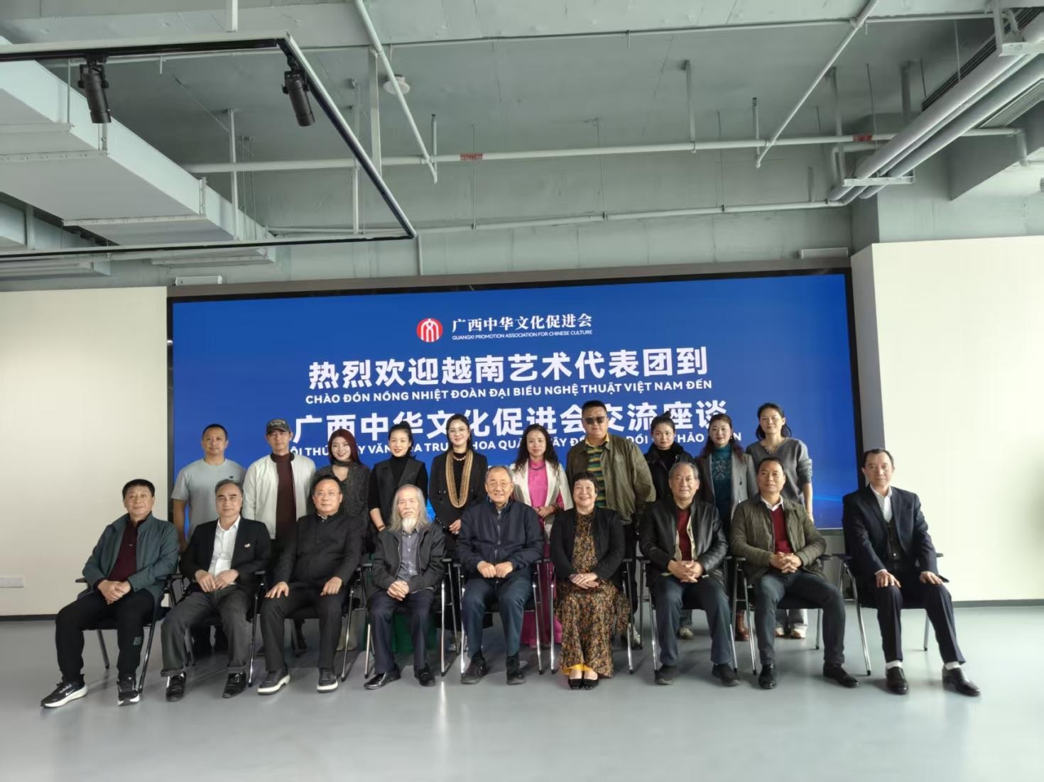 在邕期间代表团专程拜访广西中华文化促进会,代表团与广西书画艺术研究会、塔丽亚画廊共同举办中-越东西方美学艺术国际画展暨跨越无限艺术与教育发展沙龙,代表团分别与广西艺术学院造型艺术学院、声乐教育系、艺术研究院领导、教授、学者进行座谈、交流;通过作品观摩、现场创作等形式,共叙友谊、共话合作,为中越人文交流注入鲜活艺术力量。