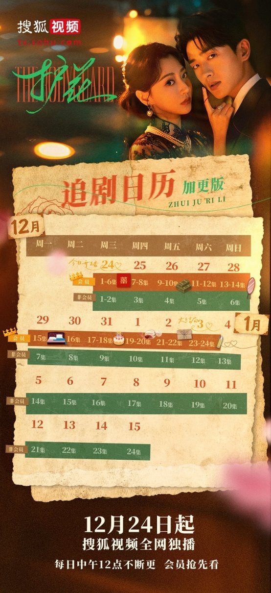 据悉自12月31日起,《护花》将会员加更,搜狐视频会员可每日更新两集,元旦假期连更八集一直到收官,每天连追,精彩不中断,可谓是爽感追剧。