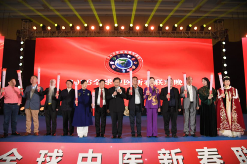 当晚最受瞩目的是中国中医活动史上首次以火炬形式开启的“杏林薪火、根脉相传”行动启动仪式。采火取丹仪仗队由儒释道代表引领,国服代表团担任护卫,大会晚会策划领衔编导团姜际春、朱正高、樊学城,全球中医新春联欢晚会总编导张辰,执行编导郭疆平,节目流程陈珍珍,视觉制片安然等30余人共同启动火炬;承载着中医初心与先辈智慧的圣火,通过全球多城同步传递,将中医文化的种子播向世界。启动环节中,嘉宾与现场观众共同倒数点火,大屏幕上的火焰与绚丽彩花相映成趣,奏响了中医文化全球传播的激昂乐章。