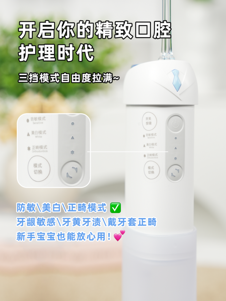 在现代快节奏的生活中,追求高效与精致成为普遍诉求。但在口腔护理领域,许多消费者却面临着“清洁”与“便捷”难以兼顾的困扰。传统护理流程繁琐——牙线、牙刷、冲牙器、漱口水轮番上阵,不仅耗时耗力,且清洁效果往往难以触及牙缝、牙龈沟等口腔盲区,导致牙菌斑堆积、口腔异味等问题频发。