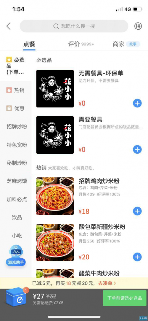 (注:2019年花小小饿了么点单页面)