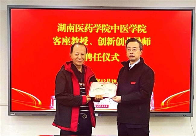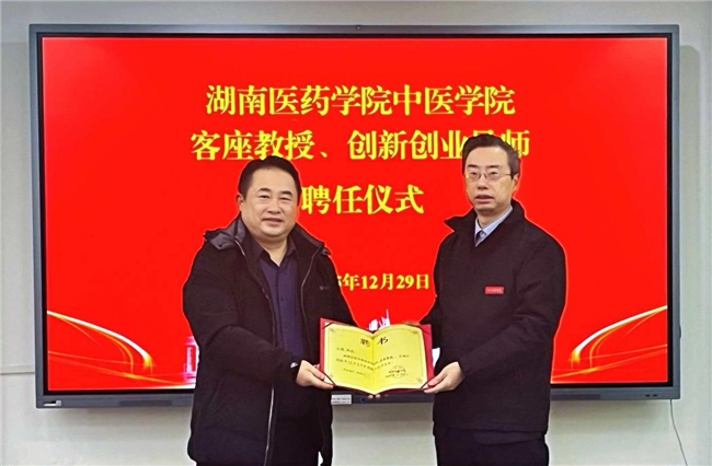 中医学院院长封敏首先对深圳骨小满健康管理有限公司几位嘉宾的到来表示了热烈欢迎,并详细汇报了“中医微创外科学”微专业的建设进展。医药学院副校长吴卫华代表湖南医药学院为骨小满董事长曾昭利及副董事长王瑞分别颁发了创新创业导师和客座教授聘书。