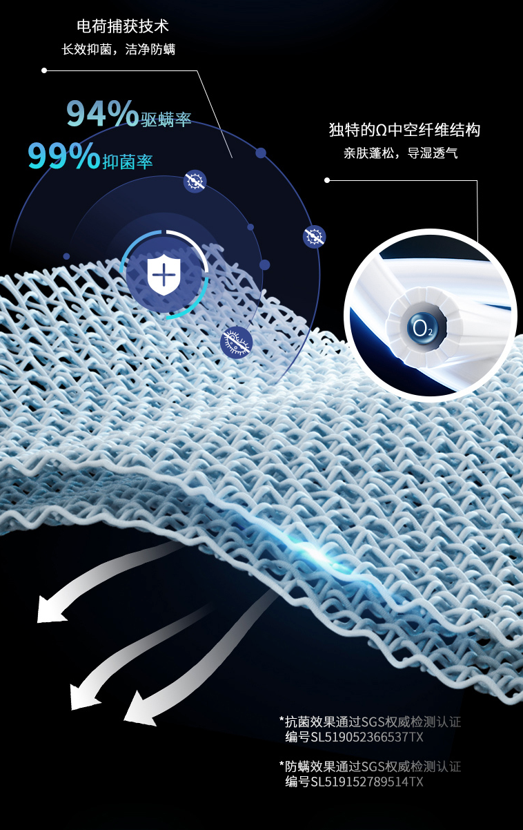 深睡的前提是安心,穗宝床垫深睡之境-尊享版从材料源头入手。针对现代人常见的螨虫叮咬瘙痒、细菌引发皮肤敏感问题,深睡之境-尊享版床垫采用DACRON FRESH系列抗菌防螨纤维,该纤维搭载独特电荷捕获技术,能持续主动捕捉并抑制细菌滋生,同时高效阻隔螨虫侵入,从源头切断微生物对睡眠的干扰。其更通过了SGS权威检测认证,数据显示其驱螨率达94%、抑菌率高达99%,远超行业标准,为过敏人群筑牢健康防线。