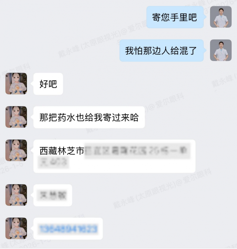镜片一到货,医院第一时间打包,连同配套护理液一起邮寄到西藏,确保青青开学前能顺利佩戴。收到镜片当天,小戴主动拨通了青青妈妈的电话:“刚开始戴可能会有点异物感,这是正常的,一般一周左右就能适应,记得多关注孩子的视力变化,有情况随时说。”暖心的跟进,让远在高原的家庭倍感踏实。