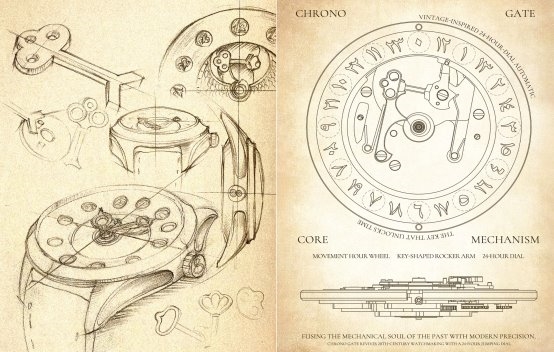 Chrono Gate 时间之门腕表承袭20世纪机械美学,设计灵感源自蒸汽时代与工业黄金年代。