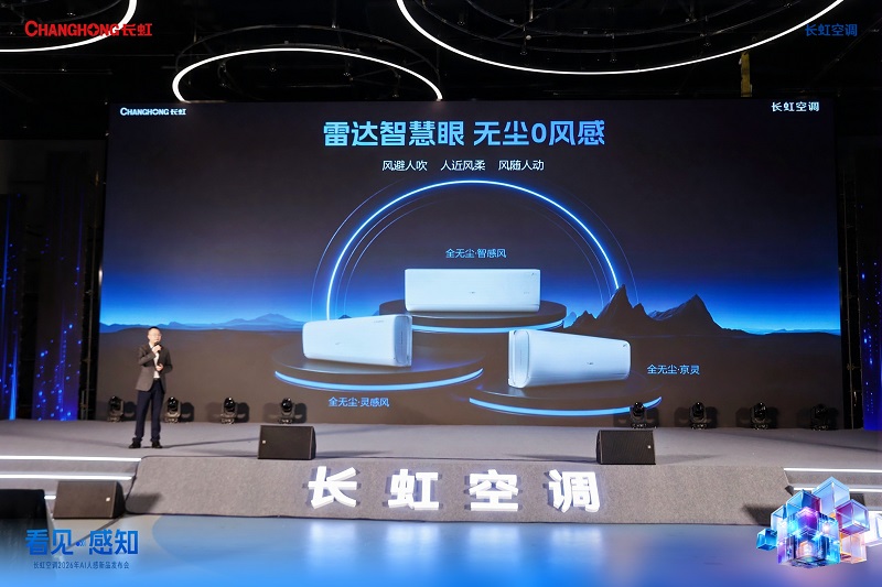 一场围绕“AI人感”的硬核发布,正在刷新空调行业竞争规则。1月6日,长虹空调2026年AI人感新品发布会在成都科幻馆召开,长虹空调正式发布全新AI雷达智慧眼技术,以“远、大、快、准”四个维度的感知进化,驱动空调实现从“被动响应”到“主动感知”的跨越。发布会现场,搭载该项技术的客餐柜Ⅱ代、全无尘·智感风挂机等长虹AI人感空调新品矩阵亮相,开创了未来智慧家居生活新图景!