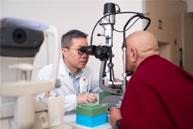 十二月的广州,冬日暖阳裹挟着南国独有的温润。番禺普瑞眼科医院的诊室内,一袭绛红袈裟格外醒目——来自青海玉树的活佛,跨越3800 米海拔的山海阻隔,专程慕名找到番禺普瑞眼科刘斌院长,寻求白内障手术治疗。