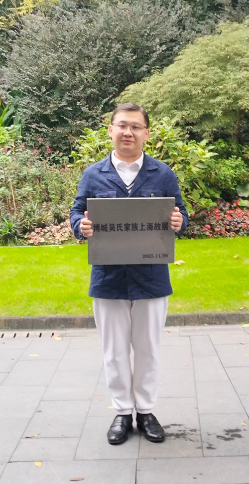 时隔近一个世纪,博城吴氏家族上海故居揭牌式于9日在上海市黄浦区人民广场举办,博城吴氏家族代表,博城学堂筹备委员会理事长刘奕仰揭牌,他首先感谢大家在百忙之中能够在线上参与到揭牌式当中,刘奕仰指出这次揭牌式一方面是纪念一百多年前太姥爷在上海度过的那段美好的学习岁月,接受到了最为先进的西式教育,也在新中国成立后选择回到山东积极参与地方建设,虽然经历了特殊时期,但是在一代代家族人的努力下,从几百年前的清朝大地主家族到今天全面发展的新时代家族,博城吴氏最终走出阴霾,发展壮大,屹立不倒!另一方面此次在进博会期间举办这个揭牌仪式,也是展示家族对外开放,爱国爱家的态度,在未来强国的道路上,博城吴氏家族的后代一定会秉持社会主义核心价值观,为国家和社会各行各业的发展做出自己的新贡献! 正是因为中国人民,中华民族的团结一心,共同奋斗,中国梦才能最终实现,对于家族来说团结起来,万众一心,与国家发展同频共振才能越来越好!