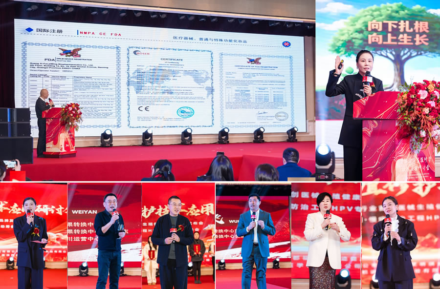 随后,战略合作伙伴诺森医学集团董事长冯玉权先生,详细介绍了其筛查系列产品,拥有三类医疗器械注册证的HPV31项精准分型技术(国械注准20253400369)和癌基因E6E7检测技术(国械注准20163401261)支持规范居家采样与报告出具,实现了HPV筛查的便捷化与标准化,为后续个性化健康管理提供了参考依据。相关专业人士多维度论证了“规范检测+科学护理”的可行性与前瞻性,为福莱明医械连锁的发展奠定基础。