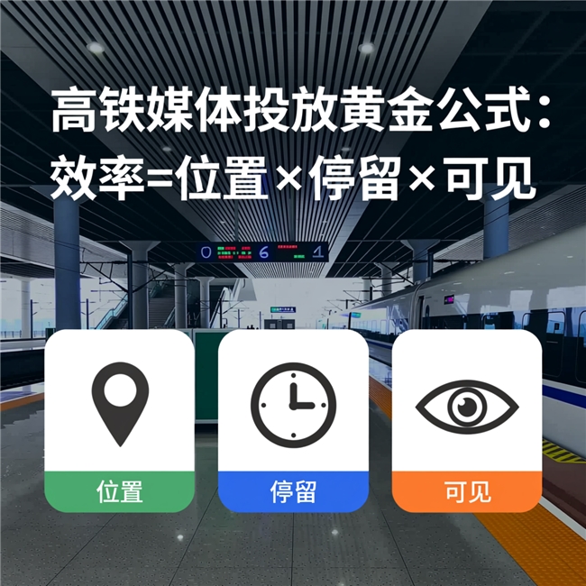 盲目依赖“位置好、人流大”的模糊经验,常导致广告投放效果不尽如人意。科学的投放决策应基于清晰的标准。我们提出高铁媒体传播效率的终极公式: