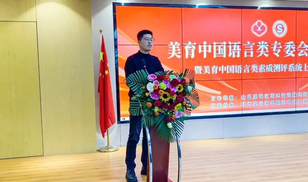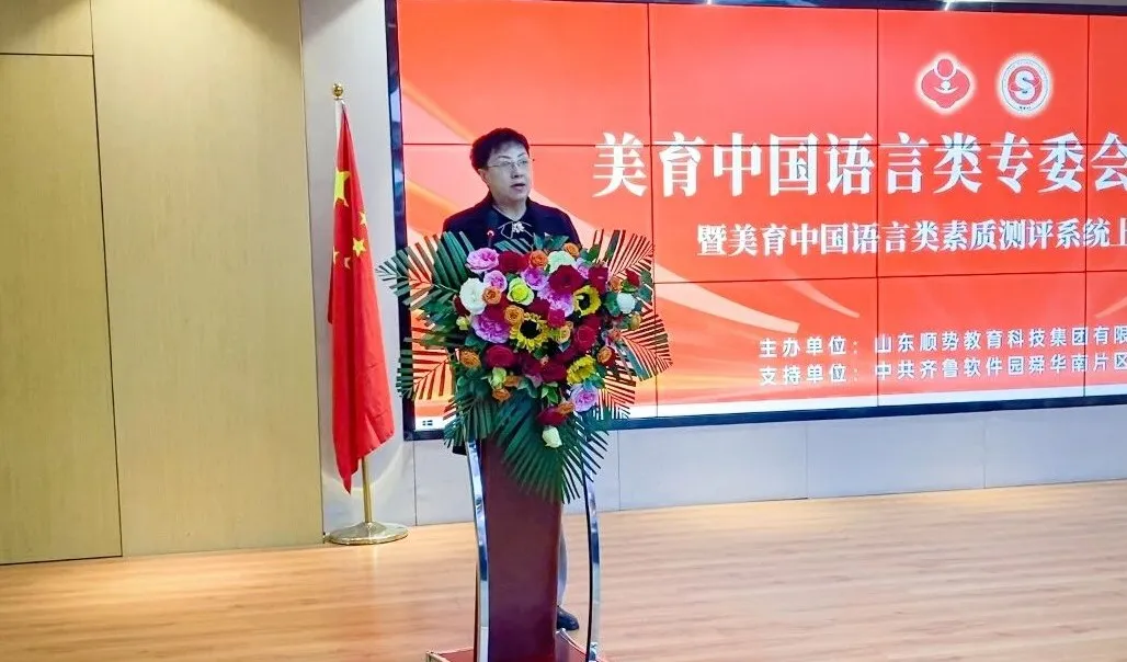美育中国副主任王涛,齐鲁软件园舜华南片区党建指导员娄芹兰分别致辞,对专委会的成立表示热烈祝贺。他们一致认为,在教育强国建设的大背景下,专委会的成立恰逢其时,当前,青少年跨文化交流需求日益增长,对外语教育的综合素质要求不断提高,专委会依托专业力量与官方指导,有望在推动外语素质教育革新、培育青少年跨文化审美感知力方面发挥关键引领作用。