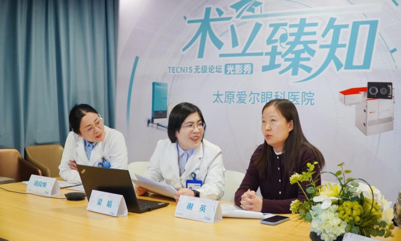 此次手术过程通过直播公开,吸引了众多眼科同行及潜在患者线上观摩。山西省人民医院眼科副主任谢英、太原爱尔眼科医院白内障科主任梁娟、副主任医师南良焕共同担任讨论嘉宾,实时解析手术细节。高岩院长娴熟精准的操作,在十分钟内高效完成了飞秒激光切口制作、晶体乳化吸除及新一代功能性人工晶状体植入,全面展现了现代白内障手术的“快、准、优”。