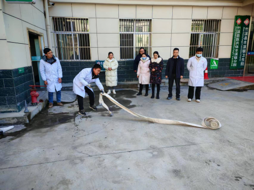 此次演练模拟了住院部二楼病房因电器短路引发火灾的场景,涵盖了火灾报警、应急响应、人员疏散、初期灭火、医疗救援等全过程。全院6个科室、28名职工及县担保公司驻丰溪村驻村工作队全员参与,各司其职,协同作战。