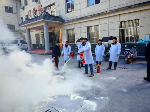在疏散引导组的指挥下,医护人员迅速组织患者及家属沿安全通道有序撤离;灭火行动组第一时间赶赴现场使用灭火器进行初期扑救;医疗救护组立即对“受伤”人员实施紧急救治;安全警戒组迅速划定警戒区域,保障救援通道畅通。整个演练过程紧张有序,各部门配合默契,展现了卫生院应对突发事件的良好处置能力。