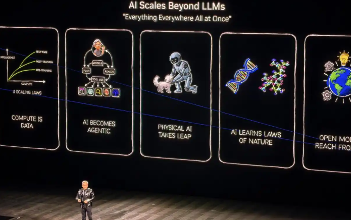 在这一背景下,英伟达(NVDA.US)CEO黄仁勋率先开场提前发布了下一代AI芯片平台“Rubin”,打破其一贯在3月GTC大会集中发布新品的传统,黄仁勋的CES演讲也被视为一次关于AI下一阶段走向的关键定调。