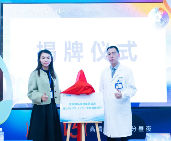 在全场嘉宾的共同见证下,番禺普瑞眼科医院邓一鹏主任、林媛总监等领导登台,共同启动【普瑞 V5】发布仪式,并为 “普瑞眼科医院集团成为 EVO+ICL (V5) 全国首批用户” 隆重揭牌,正式宣告这款第七代 EVO+ICL (V5) 晶体在番禺普瑞眼科医院的临床应用全面启动!