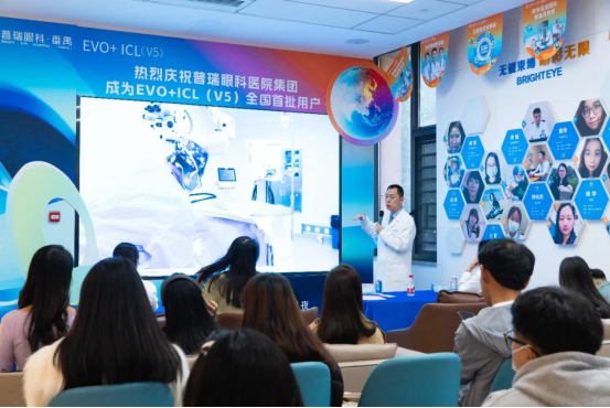 本次发布会聚焦EVO+ICL(V5),番禺普瑞眼科医院屈光手术科主任邓一鹏、运营中心总监林媛、屈光手术科副主任刘影、屈光手术科医生卢燕玲等嘉宾莅临现场,一共见证【普瑞V5】盛大发布。