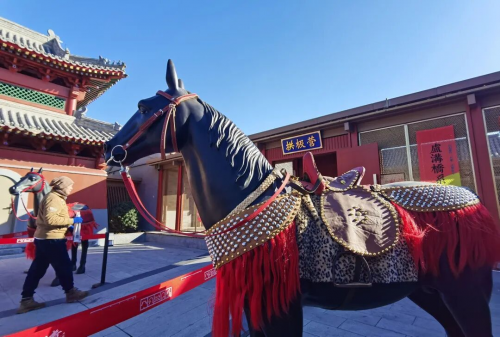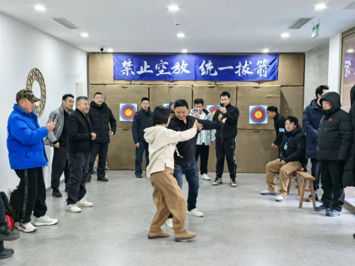 当日的拱极营前,人流攒动,两尊骏马雕塑昂首挺立,尽展“一马当先”的豪迈气势,仿佛为这场盛会擂响战鼓。步入营内,古建雄浑,廊庑开阔;刀枪列阵,铠甲生辉,射箭器具依次排开,瞬间将人拉入金戈铁马的峥嵘岁月。身着传统服饰的年轻人穿梭往来,恍若时空穿越,他们与现场的历史陈设相映成趣,让人们于历史的厚重与风雅的交融中,亲身体悟中华武术刚柔相济、儒雅并存的独特神韵,也为本次太极推手联赛增添了浓郁的文化底色。