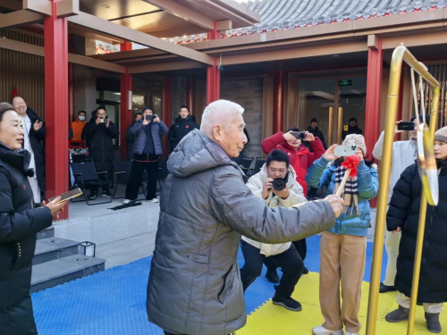 “我宣布:2026卢沟桥太极推手联赛开赛!”随着著名武术家李树峻的一声令下,门惠丰教授敲响铜锣。清脆的锣声在拱极营回荡,五组选手依次登台。