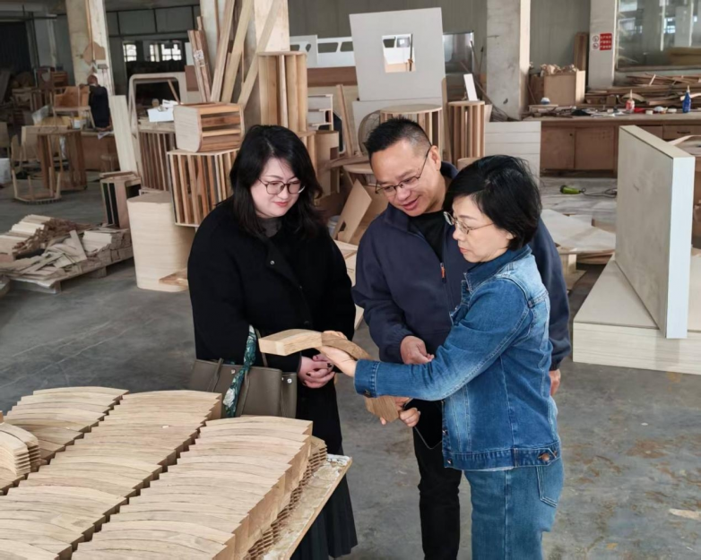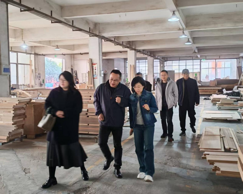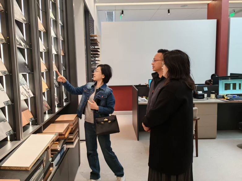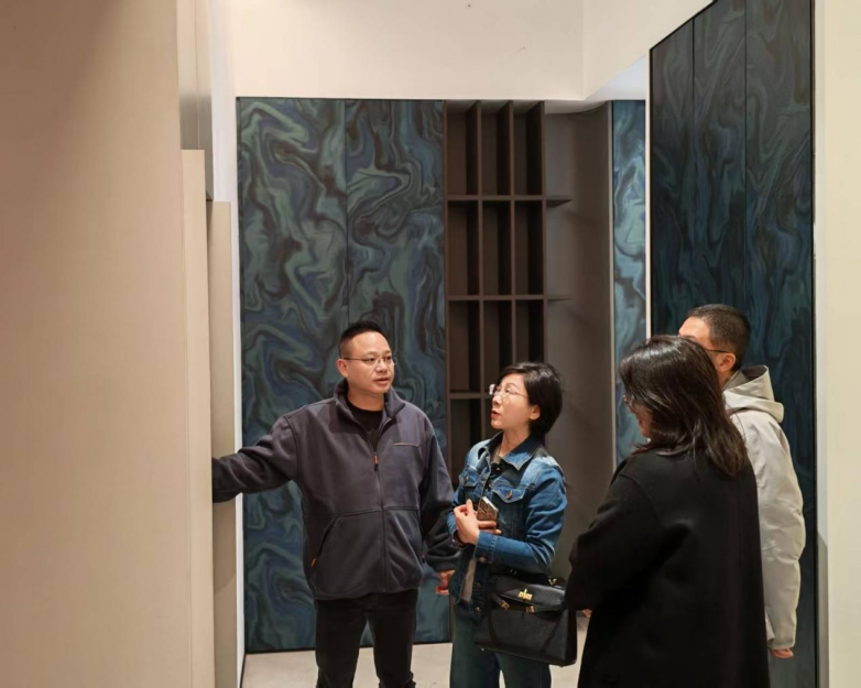 当天上午10点左右,余区长一行多人,在浙江竞牌家居科技有限公司董事长盛天先生的全程陪同下,仔细参观了竞牌家居全屋定制展厅的各种工艺技术,以及各项样品的展示,并进行多项技术交流工作。