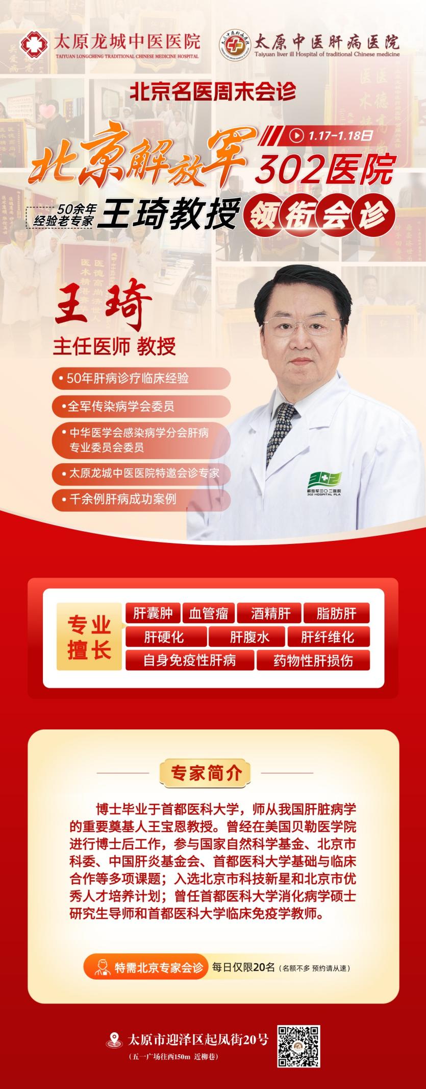 【会诊通知】1月17-18日,原解放军302医院王琦教授到院一对一会诊,制定个体化治疗方案