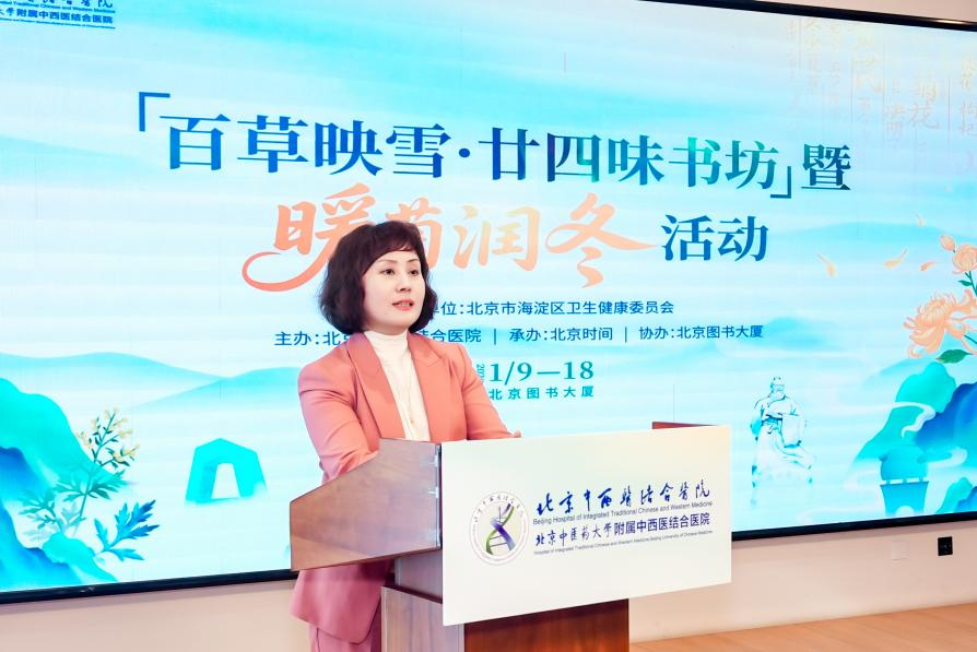 海淀区卫生健康委员会副主任、二级调研员李秀丽致辞:"健康中国2030"战略明确要求推动中医药传承创新,优化全民健康服务,冬季是市民慢病防控与科学养生的关键时期,需求尤为突出。北京图书大厦作为重要的文化传播阵地,为医药科普工作提供优质场景支撑,我们恰好能依托这一优势把中医药知识变成大家能摸得着、用得上的东西,给咱百姓探索一条更方便、更贴心的健康服务新路子。