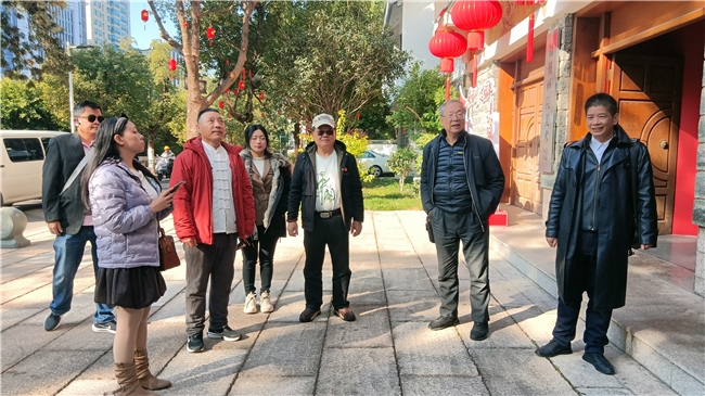 在梅园的清雅景致中,台胞潘义隆先生即兴唱响改词后的梅花歌曲,真挚抒发闽台相聚的浓情蜜意,现场赋诗填词以雅韵庆相逢。旗阳总创作《临江仙·相怀梅园》:“鼓山岚翠笼晴昼,相怀梅园香浓。双峰环翠涧流东。赠枝传厚意,两岸脉相通。一曲清歌舒望眼,乡情漫染春风。同心共盼九州同。繁花凝壮志,来日更葱茏。” 其平仄韵律精准、意境贴切,引发全场共鸣。现场精峰总亦有感而发,写下《屴崱行》:“青松覆兰若,相思坠落英。林深凝玉翠,夕照染朱红。三角梅,五角枫,绿萼舞惊鸿。云淡晚风轻,般若听梵经。凭栏三江会,侧耳鸟声萦。倾玉酒,醉千盅,最是弟兄情。” 诗词中饱含两岸同胞盼统一的共同心声,引得不少游客驻足欣赏。